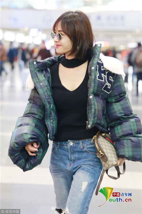 2017年12月8日,北京,蔡依林現(xiàn)身機場,她身穿夸張的格子羽絨服,袖子能藏雷成功擁有“麒麟臂” ,不知是不是在cos鐵臂阿童木。她身穿深V內搭秀胸前春光,氣場全開似走秀,牛仔褲里似乎套著透明“秋褲”,凹造型不忘保暖!