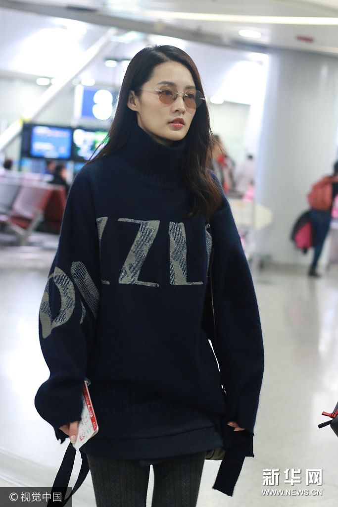 李沁高領毛衣 戴茶色墨鏡溫暖時尚