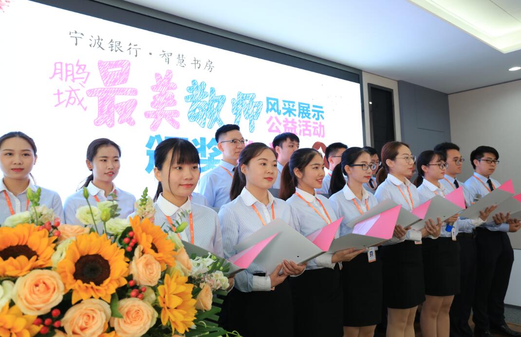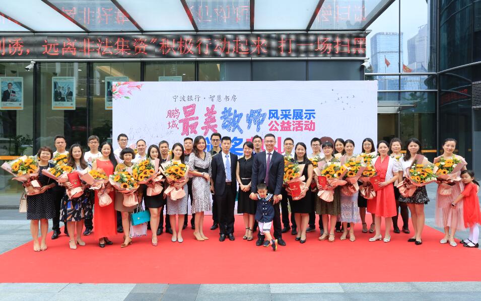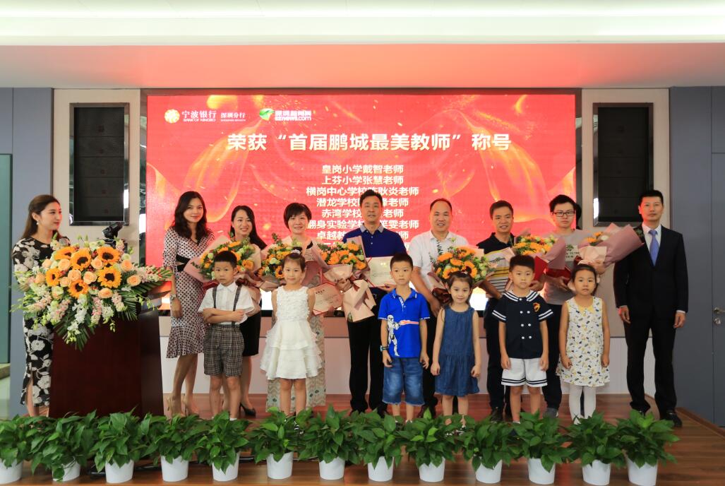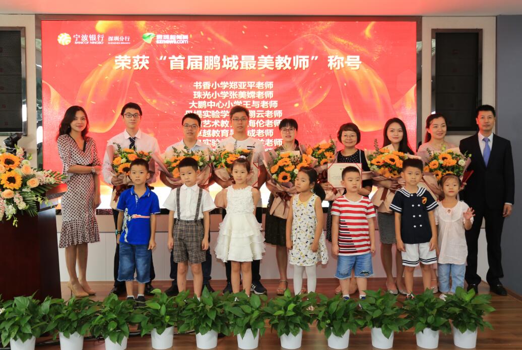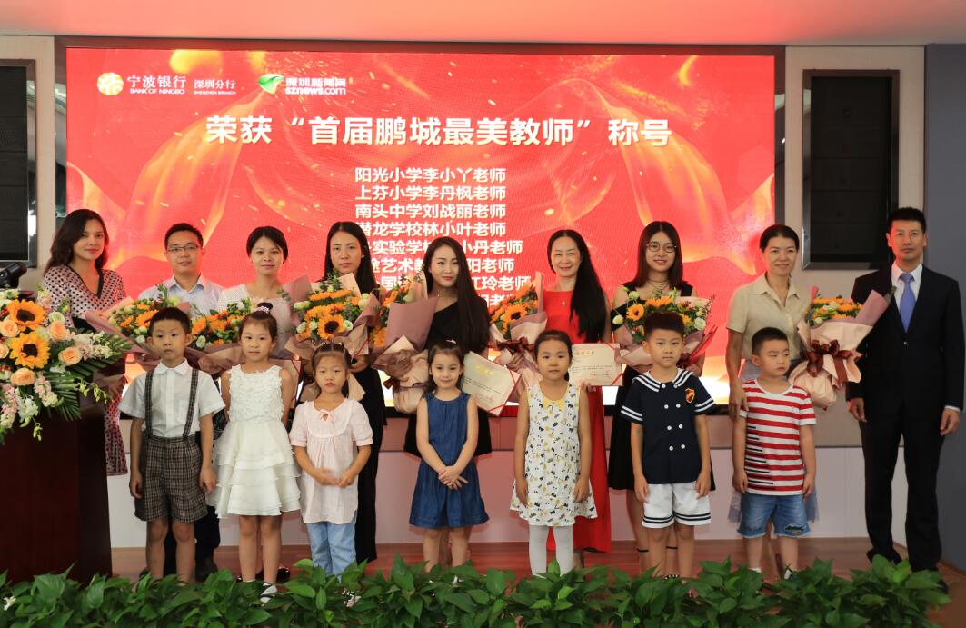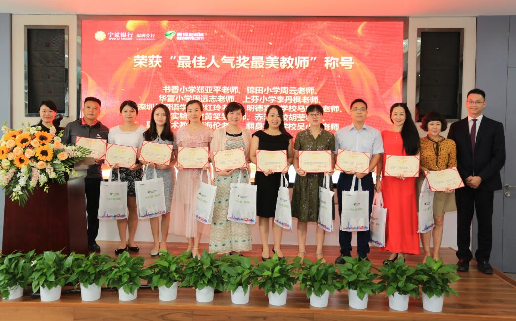 深圳新聞網(wǎng)訊 (記者朱琳江書劍)“國將興,必貴師而重傅。”老師作為“尊師重道”精神的表現(xiàn)主體,傳道受業(yè)解惑,為社會(huì)發(fā)展不斷輸送著優(yōu)質(zhì)人才。2018年9月8日教師節(jié)前夕,由深圳新聞網(wǎng)、寧波銀行深圳分行聯(lián)合主辦的首屆“鵬城最美教師”風(fēng)采展示公益活動(dòng)頒獎(jiǎng)儀式在寧波銀行深圳分行隆重舉行?;顒?dòng)自2018年3月2日啟動(dòng)以來,吸引了深圳市各中小學(xué)校的廣泛關(guān)注,經(jīng)過半年時(shí)間的尋找與舉薦,共有34位優(yōu)秀教師獲“鵬城最美教師”殊榮。其中有10位教師,通過網(wǎng)絡(luò)獻(xiàn)花獲得“最佳人氣獎(jiǎng)最美教師”榮譽(yù)稱號(hào)。