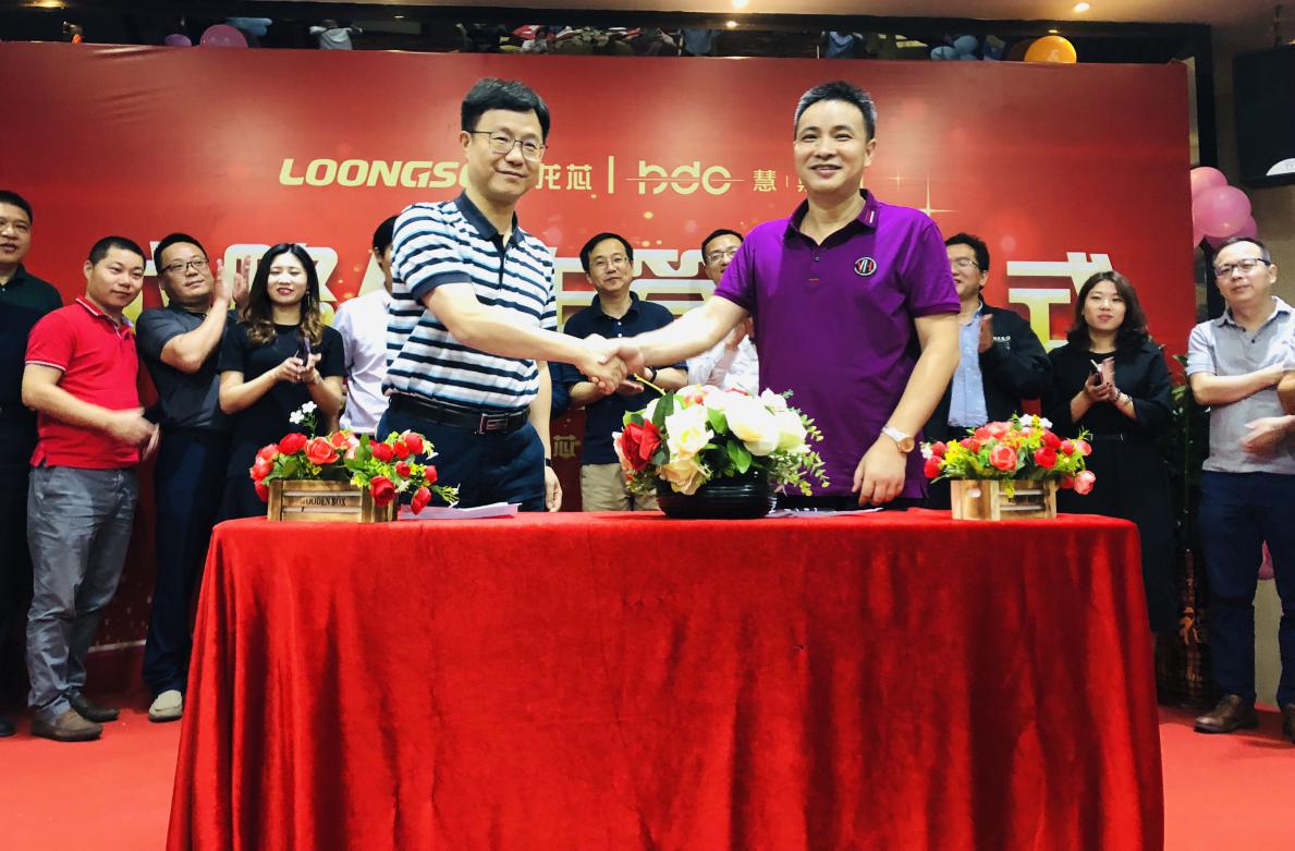 在本次儀式上,廣東龍芯總經(jīng)理江山和深圳慧鼎創(chuàng)總經(jīng)理吳力城,現(xiàn)場簽訂了戰(zhàn)略合作協(xié)議。