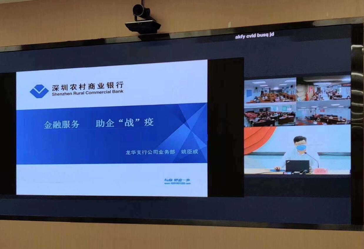 深圳農(nóng)商行龍華支行作為與會金融機構(gòu)代表,通過視頻直播及ppt演示的方式為區(qū)內(nèi)各企業(yè)詳細(xì)介紹了該行推出的抗疫專項產(chǎn)品和近期的授信優(yōu)惠政策。會后,深圳農(nóng)商行龍華支行派駐多名客戶經(jīng)理現(xiàn)場為中小微企業(yè)受理信貸需求,為企業(yè)量身定制金融方案,用實際行動為轄區(qū)內(nèi)中小微企業(yè)提供“接地氣”的綜合金融服務(wù),助力企業(yè)復(fù)工復(fù)產(chǎn)。