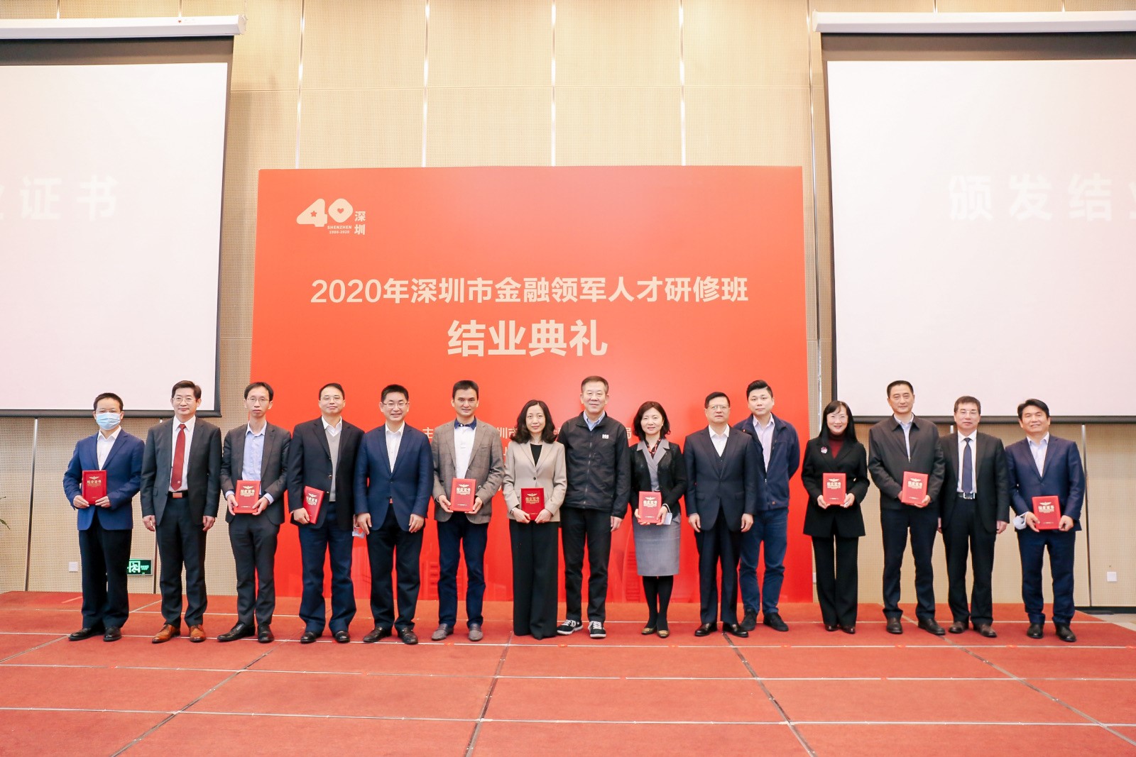 平生書記在致辭中表示,2020年是極不平凡的一年,是金融機構(gòu)積極主動作為、彰顯責(zé)任擔(dān)當(dāng)?shù)囊荒辏彩巧钲诮鹑跇I(yè)逆勢而上,保持平穩(wěn)健康發(fā)展的一年,金融機構(gòu)對全市統(tǒng)籌疫情防控和經(jīng)濟(jì)社會發(fā)展作出了重要貢獻(xiàn),金融業(yè)在全市經(jīng)濟(jì)增長實現(xiàn)V形反轉(zhuǎn)、率先翻正中發(fā)揮了“壓艙石”作用,這些成績來自每一位金融人才的拼搏奮斗,領(lǐng)軍人才為行業(yè)發(fā)展做出了積極的貢獻(xiàn)。研修班期間,學(xué)員們一起聆聽名家大咖講課、踴躍參加主題論壇、認(rèn)真撰寫調(diào)研報告,還開展了閉門研討、名企考察、交流互訪等形式多樣的活動,既豐富了知識、開闊了眼界,也促進(jìn)了交流、收獲了友誼,總體達(dá)到了預(yù)期效果,為全面實施“深圳百千萬金融人才培養(yǎng)工程”奠定了扎實基礎(chǔ)。他希望學(xué)員學(xué)思悟踐、學(xué)以致用,緊抓粵港澳大灣區(qū)、先行示范區(qū)“雙區(qū)驅(qū)動”和綜合改革試點的重大歷史機遇,聚焦制約行業(yè)發(fā)展重點難點問題,深入研究、謀篇破題,為深圳金融業(yè)高質(zhì)量發(fā)展做出更大貢獻(xiàn)。
