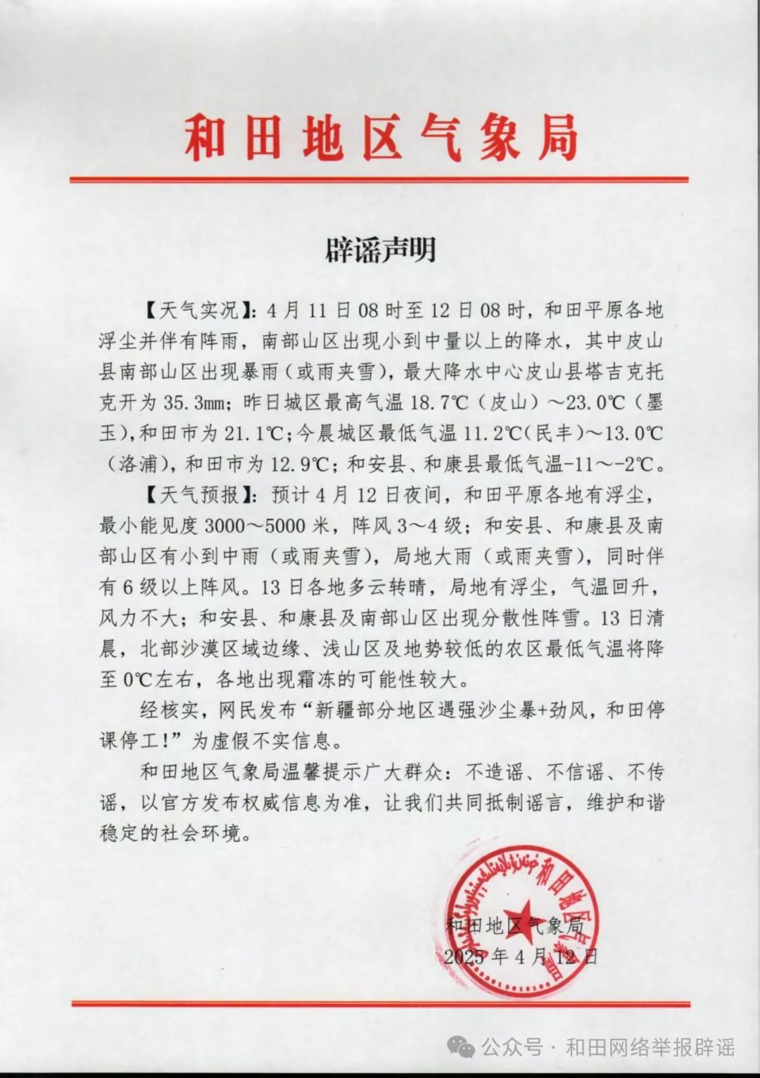 經(jīng)和田地區(qū)氣象局核實,網(wǎng)傳信息系謠言。
