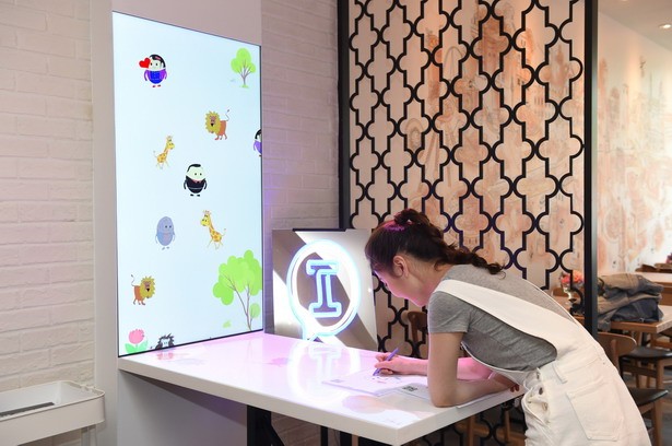 餐廳中心區(qū)域設(shè)置了一款風(fēng)靡全球的“奇妙涂鴉”互動(dòng)游戲,只需用蠟筆或微信小程序涂鴉,就能親眼見(jiàn)證自己填色的靜態(tài)畫像活靈活現(xiàn)地走入桌面走上墻壁,人人均可當(dāng)一回“神筆馬良”,用創(chuàng)意打開無(wú)限想象,邊吃邊玩,將用餐變成一種愉悅的享受。