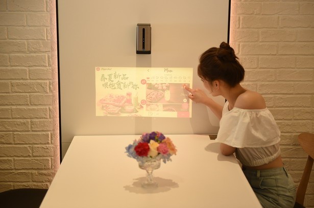 除了“情緒地帶”,智慧餐廳還提供了多元化的互動(dòng)服務(wù)。門店等位區(qū)有一整面具有奇幻動(dòng)感效果的投影互動(dòng)墻,通過(guò)獨(dú)特的觸摸啟動(dòng)可以探索必勝客的比薩從原料種植、加工、生產(chǎn),一直到制作成品、奉客、外送等一系列過(guò)程,為顧客提供趣味十足的多感官虛擬互動(dòng)體驗(yàn),讓無(wú)聊的等位時(shí)間也變得興味盎然。