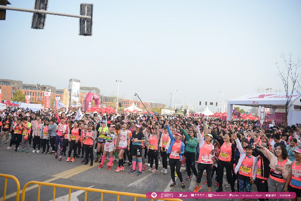 今年賽事現(xiàn)場最大的亮點(diǎn)在于,取消了開賽儀式,僅保留鳴槍一項(xiàng)流程。主會場起點(diǎn)區(qū)域沒有了大型噴繪的主席臺,取而代之的是小巧簡約的發(fā)令臺。上午7點(diǎn),不間斷的熱身音樂響徹整個甜蜜小鎮(zhèn),運(yùn)動員們在進(jìn)入賽道集結(jié)后,配合著音樂,跟隨著健身教練的指引一起熱身。上午8點(diǎn)30分,鳴槍嘉賓們準(zhǔn)時登臺鳴槍,全體3000多名跑者一起沖出起點(diǎn)門,化作一片粉紅色的海洋,向著終點(diǎn)奔去?!叭∠_賽儀式對跑者來說是非常貼心的一項(xiàng)舉措,讓我們在進(jìn)入賽道之后依然能夠繼續(xù)熱身,時間一到準(zhǔn)時開跑,整個參賽流程也更加流暢了。”參賽選手在賽事現(xiàn)場直言道,簡化起跑前的儀式流程,對于跑者來說是一種更好的參賽體驗(yàn)。