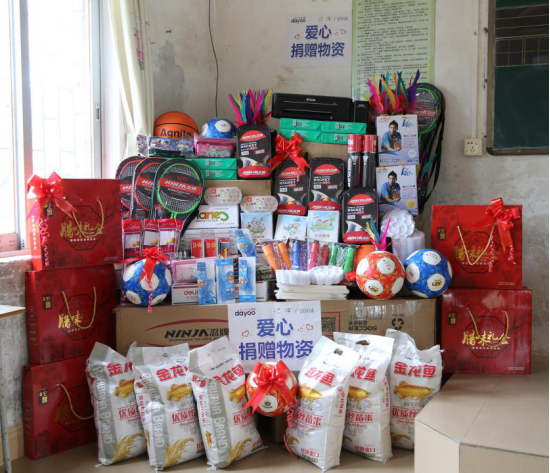 在捐贈儀式上,洋洋公益團隊為橫槎小學的師生們送上籃球、足球、羽毛球、作業(yè)本、鉛筆、橡皮檫、文具盒、打印機等文體用品和教學用具,以及大米、臘腸等生活物資。橫槎小學謝校長代表學校對愛心團隊一行表示感謝,并將錦旗和學生用心勾勒的美術(shù)作品回贈給碧桂園集團廣清區(qū)域、廣州日報大洋網(wǎng)等愛心代表。