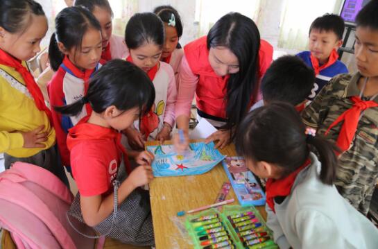 龍門縣是中國現(xiàn)代民間繪畫畫鄉(xiāng),以“龍門農(nóng)民畫”著稱。就讀于龍門縣橫槎小學的學生,因?qū)W?;A(chǔ)設施落后,教學物資匱乏,無法開展相關(guān)的農(nóng)民畫藝術(shù)課程。為了幫助孩子們通過繪畫感受自然生態(tài)與鄉(xiāng)村生活之美,傳承民間繪畫藝術(shù),洋洋公益團隊中來自“德藝軒”美術(shù)培訓機構(gòu)的彭小利老師開展“創(chuàng)意繪畫·神秘的海洋世界”美術(shù)小課堂,結(jié)合海洋中形態(tài)各異的生物,聲情并茂地講授素描、水彩等繪畫知識,讓孩子們感受繪畫藝術(shù)的樂趣。