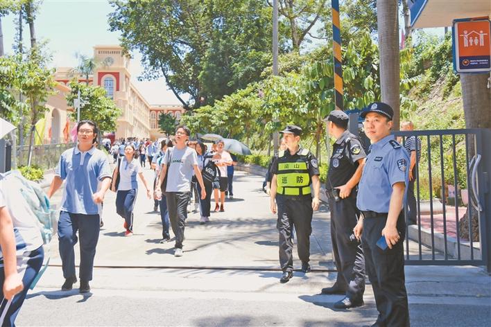 據(jù)悉,今年南山區(qū)共有5個(gè)考點(diǎn),167個(gè)考場(chǎng),4640名考生參加考試。高考期間,南山警方在分局指揮中心設(shè)立總指揮部,在南頭中學(xué)、深大附中、第二高級(jí)中學(xué)、華僑城中學(xué)、育才中學(xué)等5個(gè)高考考點(diǎn)設(shè)現(xiàn)場(chǎng)指揮部,全面統(tǒng)籌各項(xiàng)高考安保工作。同時(shí),聯(lián)合學(xué)校、交警、消防等部門(mén),加強(qiáng)對(duì)考點(diǎn)及周邊重點(diǎn)單位、公園、商圈的檢查巡邏力度,積極排查各類(lèi)安全隱患,確保轄區(qū)考點(diǎn)平安有序,保障考生順利參考。在加大治安巡防、安全檢查、交通疏導(dǎo)力度的同時(shí),南山警方同步做好服務(wù)工作。高考期間,南山警方為高考考生搭建安全便捷的綠色通道。6月7日,南山警方先后為2名“三考”考生辦理臨時(shí)身份證,從受理、制證到發(fā)證,20分鐘內(nèi)迅速完成,確??忌馨残母翱?。