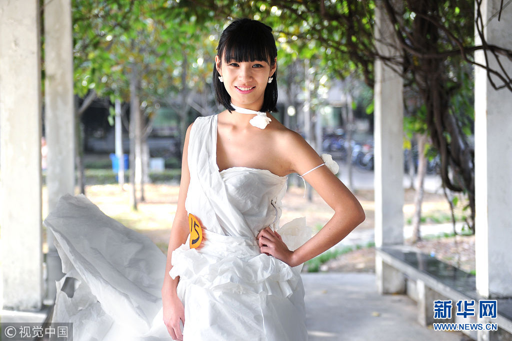 ????2013年11月15日,湖北經(jīng)濟學(xué)院法商學(xué)院社團聯(lián)合會舉辦的法商之星婚紗設(shè)計大賽上,25位“模特”身著3米衛(wèi)生紙制作的創(chuàng)意設(shè)計婚紗行走校園,驚艷全場。(圖片來源:視覺中國)