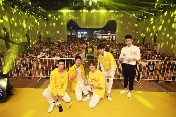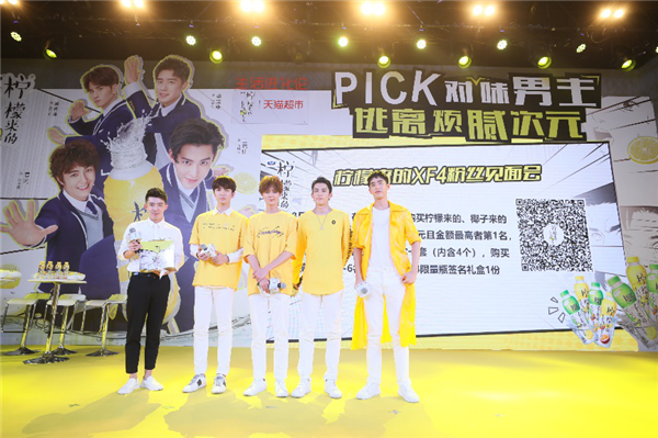 圖:達能檸檬來的見面會上F4帥氣現(xiàn)身,與粉絲親密合照