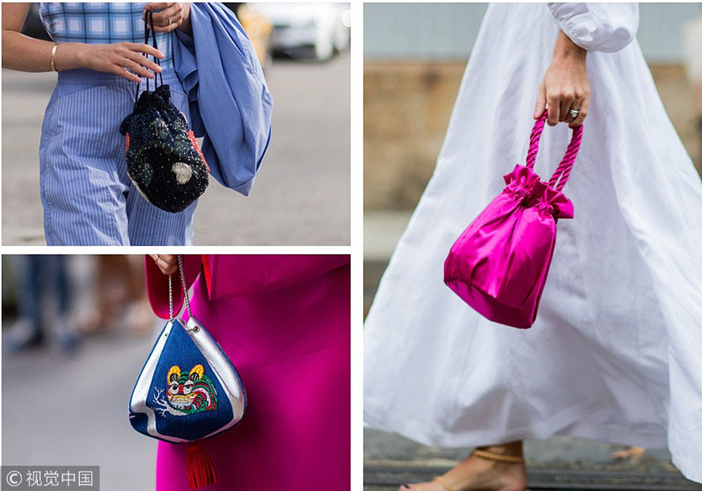 ????現(xiàn)在的時(shí)尚簡直就是上一秒是天堂,下一秒是地獄的Feel。也許之前是個(gè)不起眼的小物件,下一秒就是時(shí)髦單品Top1了,都不敢這么玩的。抽繩口袋,遍布各大超市、菜市場(chǎng),或者是你家的收納袋,就這樣一個(gè)不起眼的布口袋,就這樣成功“洗白”上位,成為新晉IT Bag。簡簡單單一個(gè)布口袋,拎著就走,真是看多了還覺著很好看啊~(圖片來源:視覺中國)
