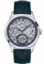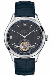 ????萬寶龍傳承精密計時系列外置框架陀飛輪超薄鏤空腕表搭配藍色劍形指針和全新藍色鱷魚皮表帶,盡顯極致優(yōu)雅。
