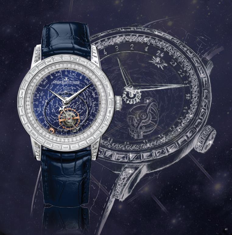 ????積家Master Grande Tradition Tourbillon Céleste超卓傳統(tǒng)陀飛輪大師系列星空腕表以讓人目眩神迷的方式詮釋時間。為了充分展現(xiàn)腕表的天文特性,軌道式飛行陀飛輪顯示的為恒星時間而非太陽時間,比太陽時間縮短近四分鐘。在這款腕表的表盤外沿,附帶太陽標志的指針以24小時為一周在表盤上轉(zhuǎn)動。表圈顯示了24小時刻度、黃道十二宮星座與月份。軌道式飛行陀飛輪與星辰和星座同步運轉(zhuǎn),和表盤共演一段恒星之舞。