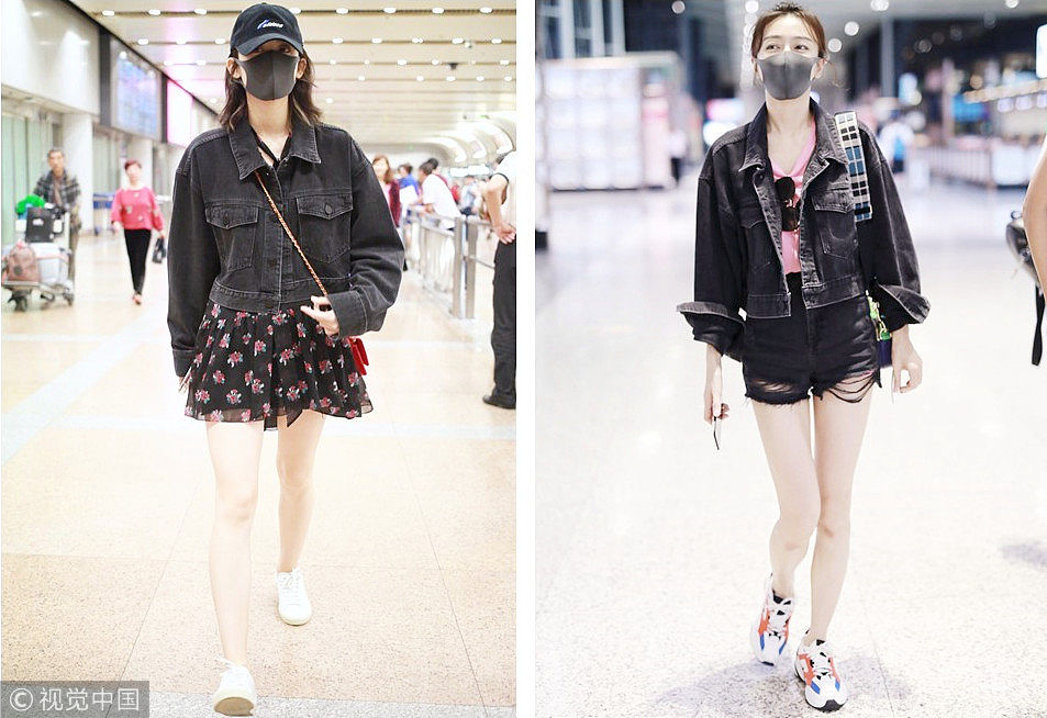 ????娜扎 VS 秦嵐撞衫:Alexander Wang黑色牛仔夾克。 (圖片來(lái)源:視覺中國(guó))