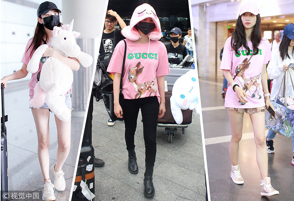 ????宋祖兒 VS 歐陽(yáng)娜娜 VS 韓雪撞衫:Gucci粉色小鹿斑比T恤。 (圖片來(lái)源:視覺中國(guó))
