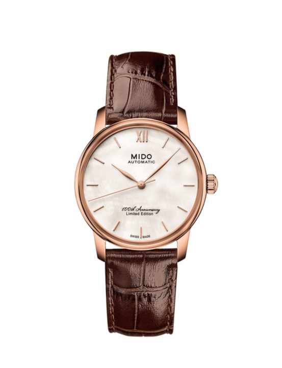 貝倫賽麗系列100周年限量款女士腕表擁有經(jīng)典、雅致的線條感,完美體現(xiàn)了瑞士美度表品牌歷經(jīng)歲月沉淀的經(jīng)典風(fēng)格與日漸精益的制表工藝。由PVD鍍玫瑰金不銹鋼表殼環(huán)繞其中的白色珍珠貝母表盤,盡顯高雅亮潔之姿。飽滿渾圓的葉形時(shí)針和分針經(jīng)過沖壓工藝處理,搭配PVD鍍玫瑰金立體鑲嵌刻度,將精致典雅隱藏于細(xì)節(jié)之中。透過其雙面鍍防眩目涂層藍(lán)寶石玻璃表鏡,表盤精美非凡的細(xì)節(jié)展露無遺;搭配做工細(xì)膩的棕色小牛皮軋鱷魚紋表帶,于復(fù)古典雅間,盡情釋放溫婉女性的曼妙風(fēng)韻。