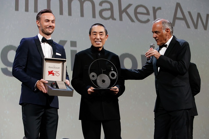 ????深圳新聞網(wǎng)訊 2018年9月6日晚,2018積家電影人榮譽獎(Jaeger-LeCoultre Glory to the Filmmaker)的頒獎儀式于威尼斯電影宮(Palazzo del Cinema)隆重舉行,積家全球市場傳訊總監(jiān)Nicolas Siriez與威尼斯國際電影節(jié)主席阿爾伯托?巴巴拉(Alberto Barbera)一同為中國著名導(dǎo)演張藝謀頒獎,感謝他對當(dāng)代電影原創(chuàng)性發(fā)展做出的杰出貢獻。頒獎典禮之后,作為此次非競賽單元影片的導(dǎo)演張藝謀最新力作《影》 于威尼斯電影節(jié)進行全球首映。