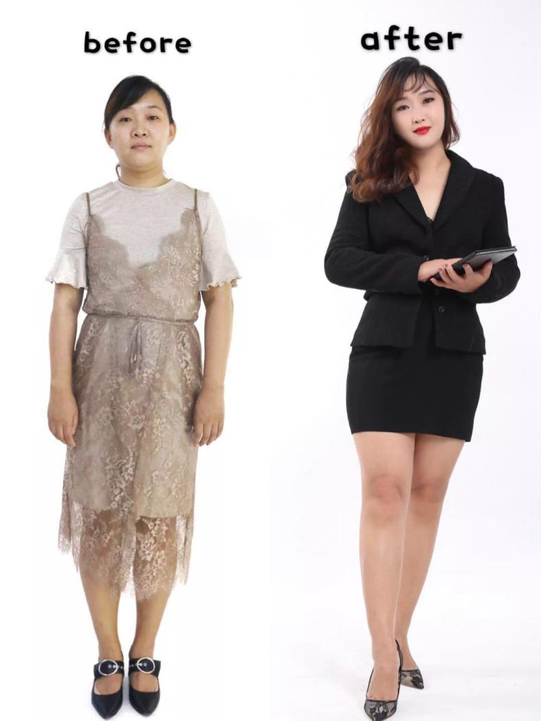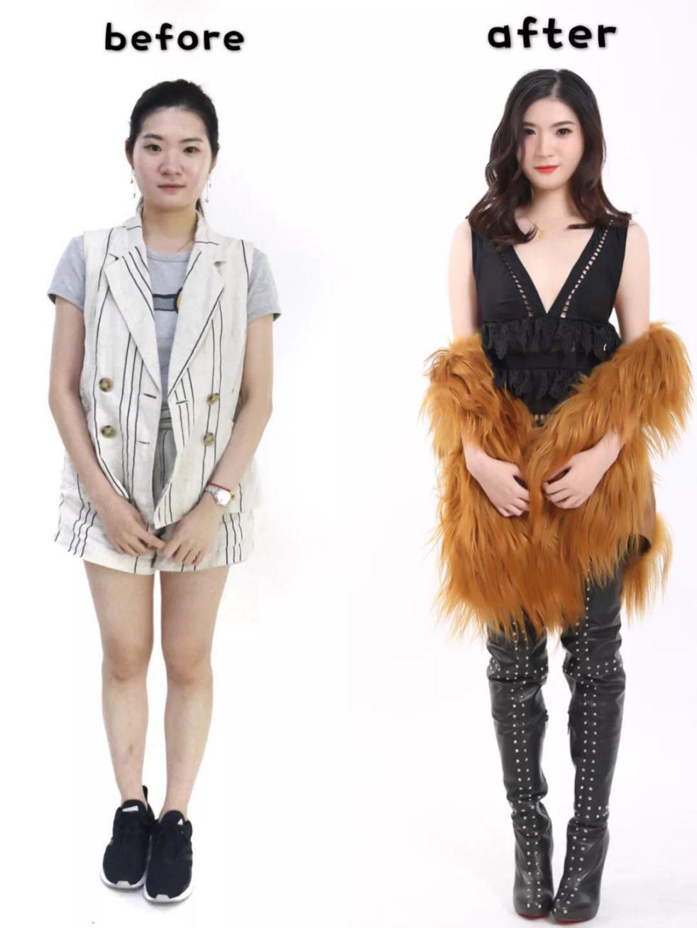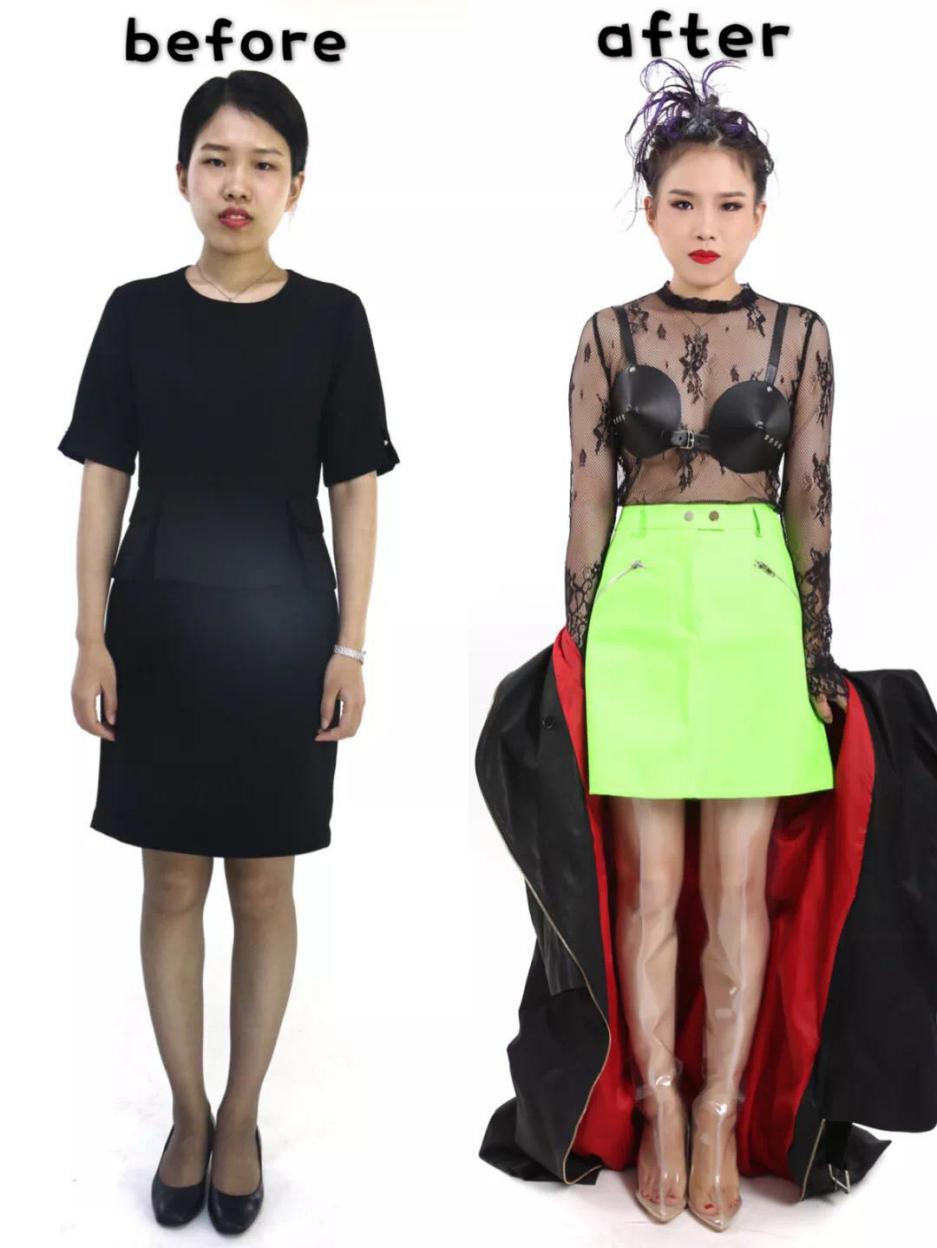 她 是一位已婚少女(fu),素面朝天上班族,養(yǎng)生派,天天在辦公室給同事泡茶喝,日常打扮比較斯文(也就是保守),恨不得夏天還穿高領毛衣那種。改造前,一直抓著小編手說,“我哪里都不露!”