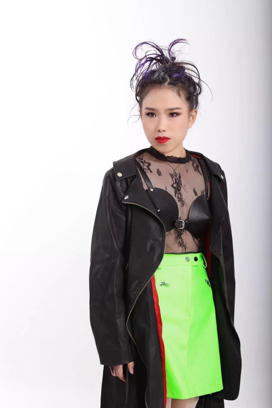 她整體造型是比較先鋒,個性突出的,于是我采用了辮子的元素,搭配了色彩,增強了時尚感。同時綁了一個馬尾,也比較俏皮。