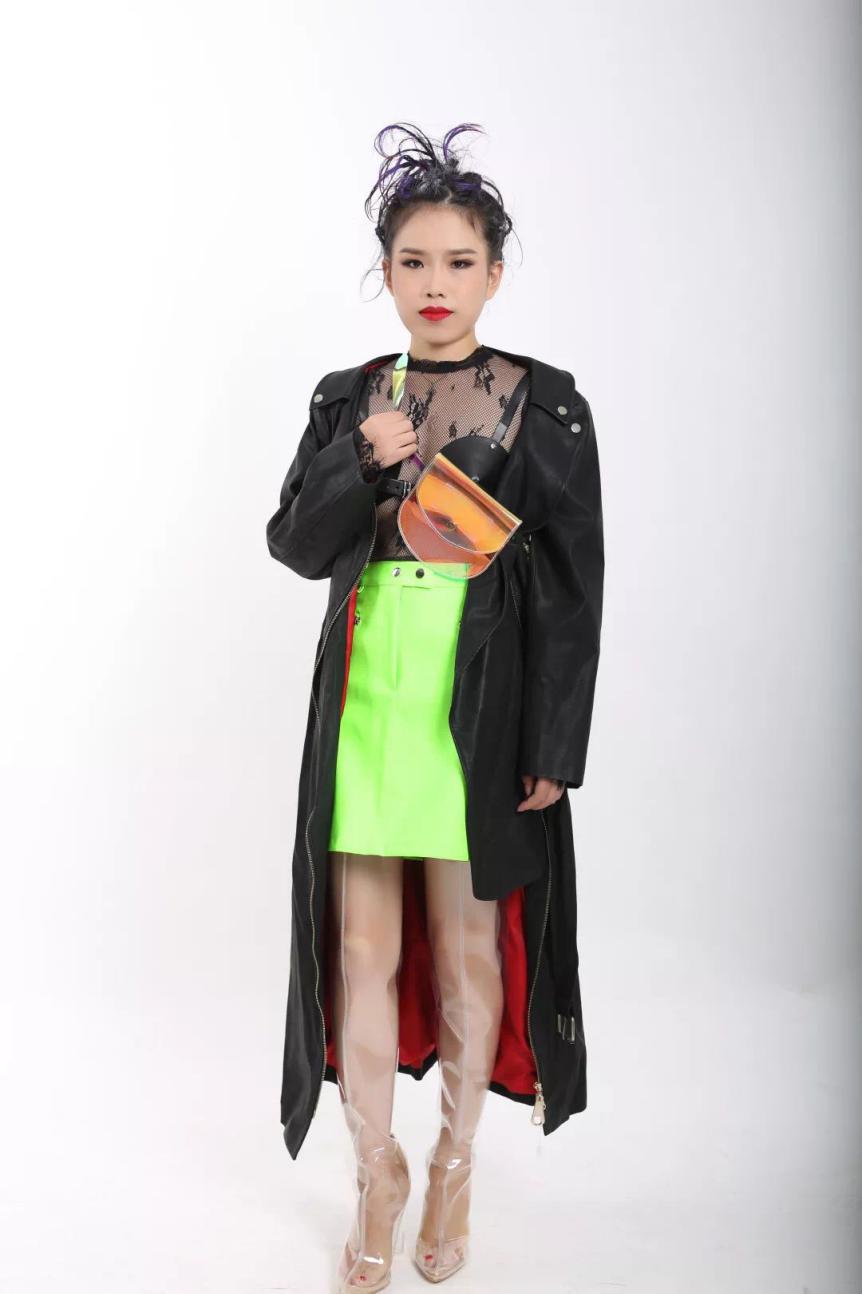 Nana長得特別冷艷的,內(nèi)心像藏了一頭野獸,如果穿日韓風的話會埋沒了她的氣場。這次給她選擇了現(xiàn)在國際最流行的PVC靴子,搭配了熒光色的短裙,她完全可以撐起來。