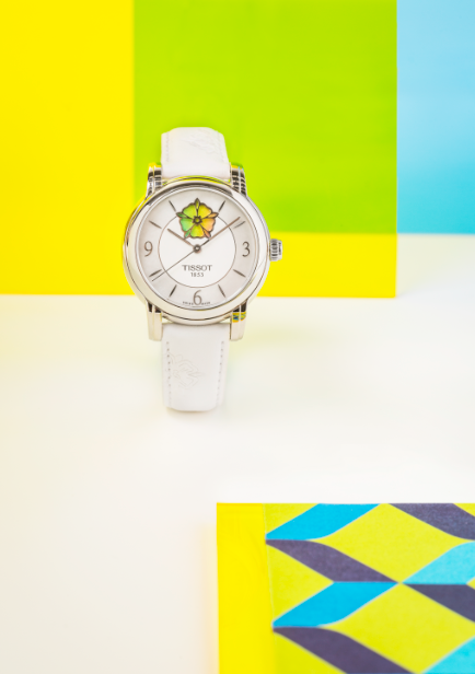 時光流逝,但玫瑰永存。天梭心媛系列彩虹玫瑰款將轉瞬的時光延展成燦爛星河,一抹白色的表帶恰似掛在天際的銀河帶,七色玫瑰在銀河帶的映襯下熠熠生輝。經典的白色與明艷的彩虹珠璧交輝,簡繁得當,秋日之素凈與豐饒,女性之柔美與力量盡在表盤間激蕩。