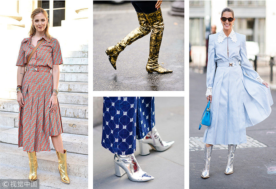 眼看北方氣溫驟降南方也開始降溫,儲存依舊的靴子這時候不拿出來穿更待何時。這一兩年流行的金屬色元素如果放在靴子上也算得上街頭一道靚麗的風(fēng)景線,衣服單調(diào)無趣不妨在靴子上花點(diǎn)小心思,金屬色戰(zhàn)靴這個秋季你值得擁有。 (圖片來源:視覺中國)
