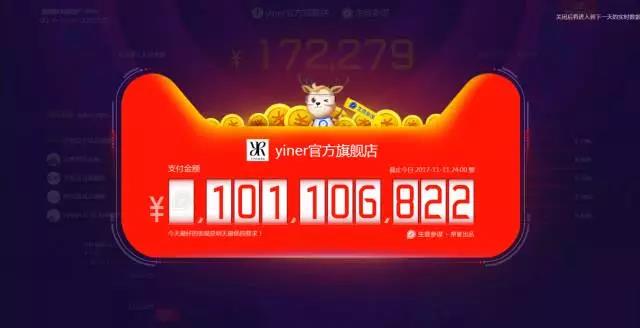 2017年“雙11”YINER音兒天貓總成交額破1億
