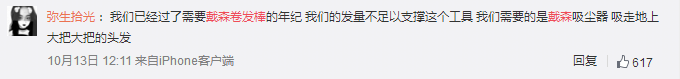 深圳新聞網(wǎng)訊 自從戴森在紐約召開了新品發(fā)布會推出了美發(fā)新產(chǎn)品——Airwrap卷發(fā)棒之后,全世界的女性又再一次為戴森怦然心動。消息一出,微博及朋友圈炸成一片,女士紛紛表示要入手,男士則表示不能讓老婆看到,更有發(fā)量不足、缺女友、不用戴森卷發(fā)棒的Tony老師拒絕喊他總監(jiān)等等神評論。