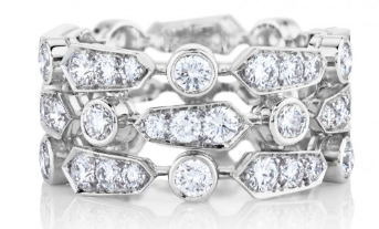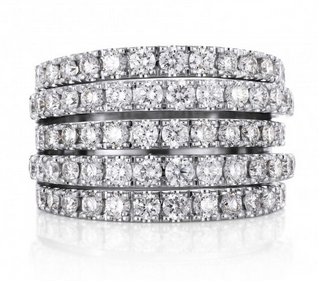 | De Beers戴比爾斯Classic五行戒指 18K白金傳遞著經(jīng)典而現(xiàn)代的時(shí)尚宣言。總重1.75克拉。密鑲。戒指寬度:13 mm。 |