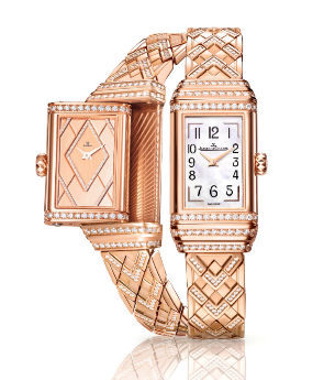 積家 Reverso One Duetto Jewelry雙面翻轉(zhuǎn)系列珠寶腕表玫瑰金款糅合大工坊的高級(jí)珠寶與高級(jí)制表工藝,為女性呈獻(xiàn)一款完美平衡藝術(shù)設(shè)計(jì)和功能性的珠寶杰作。此腕表從裝飾藝術(shù)汲取靈感,長方形表盤、背面表盤的菱形圖案,以及18K玫瑰金表鏈的設(shè)計(jì),其線條細(xì)致修長,展現(xiàn)高雅的女性魅力。此外,表盤上、下均采用標(biāo)志性的三道裝飾刻紋,令這款可翻轉(zhuǎn)的腕表更具特色。裝飾藝術(shù)風(fēng)格自誕生起一直引領(lǐng)時(shí)尚,歷久常新。這款典范之作完美詮釋了裝飾藝術(shù)風(fēng)格的簡約設(shè)計(jì)哲學(xué)。