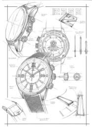 右:積家產(chǎn)品設(shè)計(jì)總監(jiān) Lionel Favre的積家北宸系列手稿圖