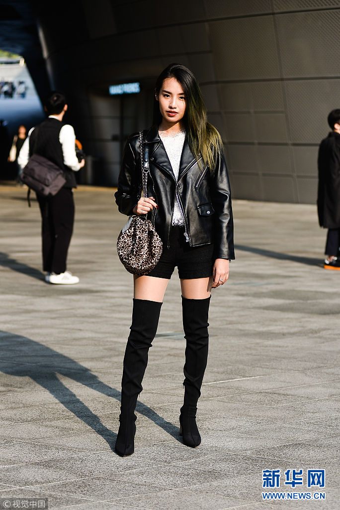 當?shù)貢r間2018年10月16日,韓國首爾,2019春夏首爾時裝周:潮人街拍。 (圖片來源:視覺中國)