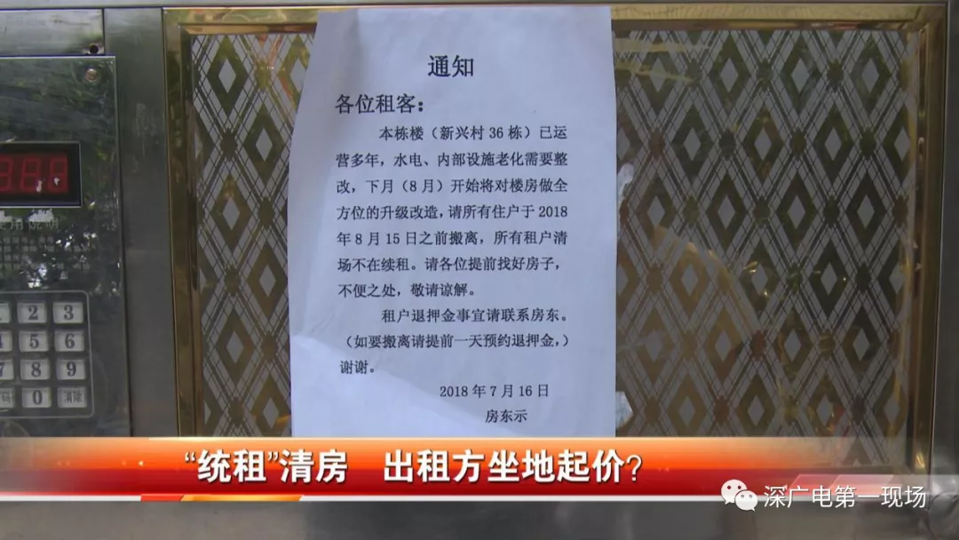 在趙先生家附近,記者找到了這個(gè)名為新興村的城中村,在其中一棟樓房的入口處貼著一張告示,上面寫道,由于房屋水電設(shè)施老化,所以需要整改,8月15日之前所有住戶都得搬離,所有租戶都不再續(xù)租,落款寫的是房東。