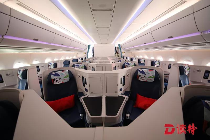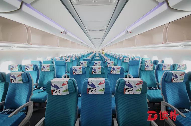 除了色彩繽紛的熊貓彩繪之外,機(jī)艙內(nèi)的熊貓?jiān)仉S處可見(jiàn),仿佛把大熊貓基地搬上了天。