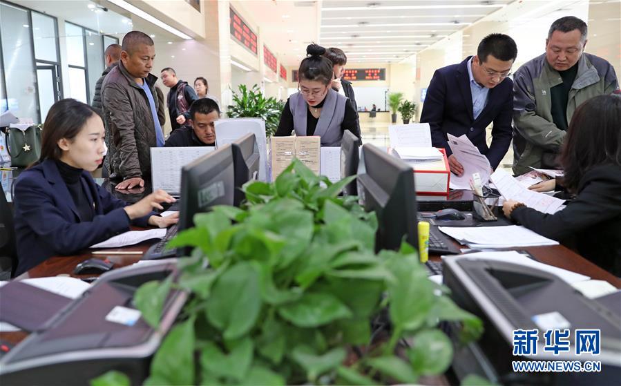 在中國(guó)(遼寧)自由貿(mào)易試驗(yàn)區(qū)營(yíng)口片區(qū)政務(wù)服務(wù)中心,眾多企業(yè)代表咨詢注冊(cè)(11月20日攝)。