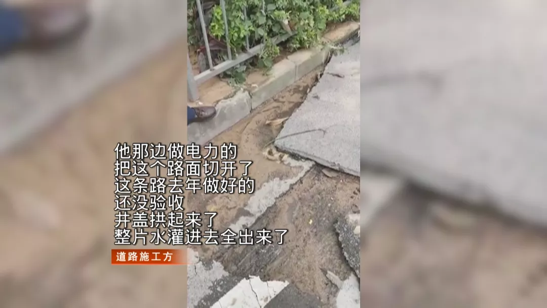 一場(chǎng)暴雨過(guò)后,寶安石巖石龍大道剛鋪好的瀝青路成了渣渣!