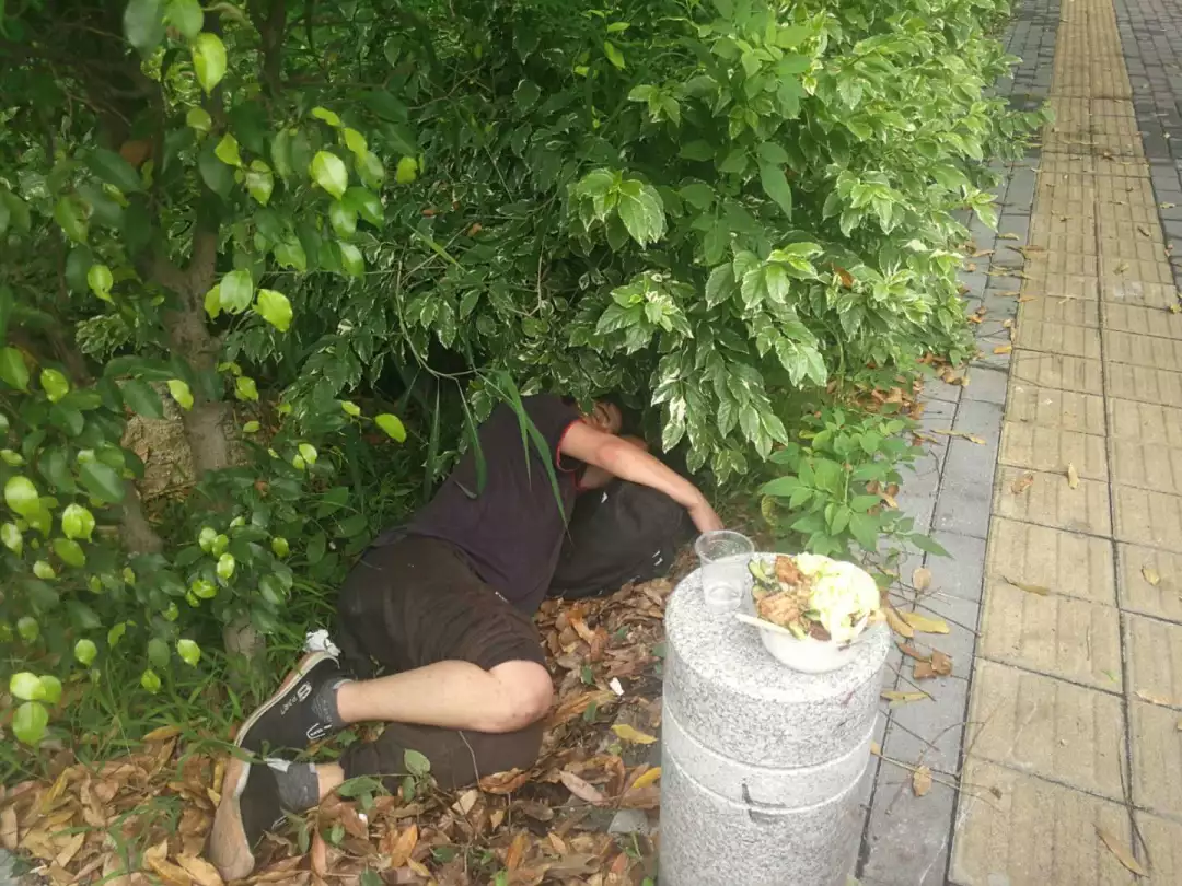 發(fā)現(xiàn)在場站門口的人行道綠化帶上