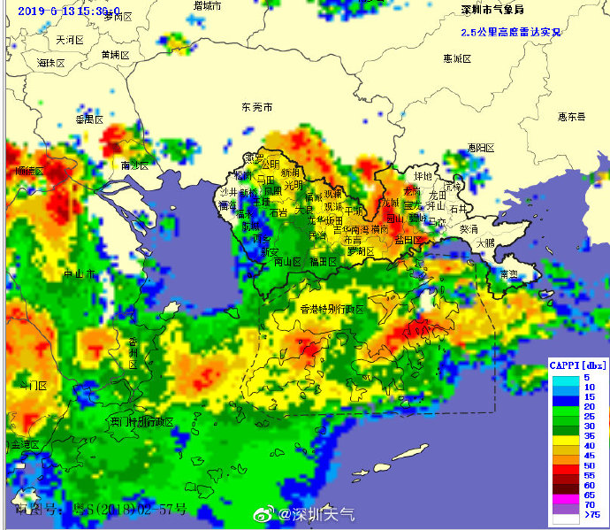 預(yù)計(jì)全市1-2小時內(nèi)將出現(xiàn)20-40毫米局部50毫米降水,深圳市氣象臺于2019年06月13日08時將暴雨黃色預(yù)警擴(kuò)展至全市,全市處于暴雨戒備狀態(tài),請注意防范。