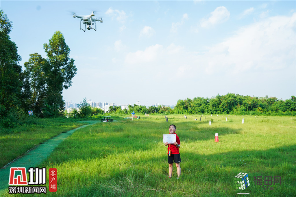 無人機飛行課程,小朋友在飛手的指導下學習操作無人機。