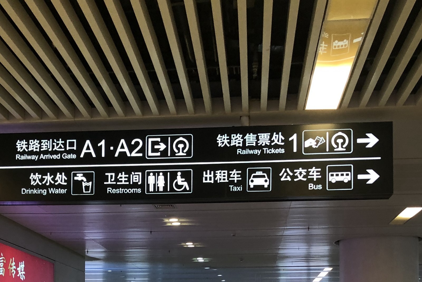 ▲同時記者留意到,在高鐵站沿路的洗手間指引標(biāo)識牌上,僅標(biāo)注了男女洗手間和殘疾人洗手間的標(biāo)識,卻沒有第三方洗手間的指引標(biāo)識,只有在殘疾人洗手間的門上才能看到“一家三口手拉手”的圖案標(biāo)識,不方便有需要的市民“按圖索驥”。且該洗手間位置處于男洗手間入口通道內(nèi),如果女性帶孩子進入使用,不免有些尷尬。
