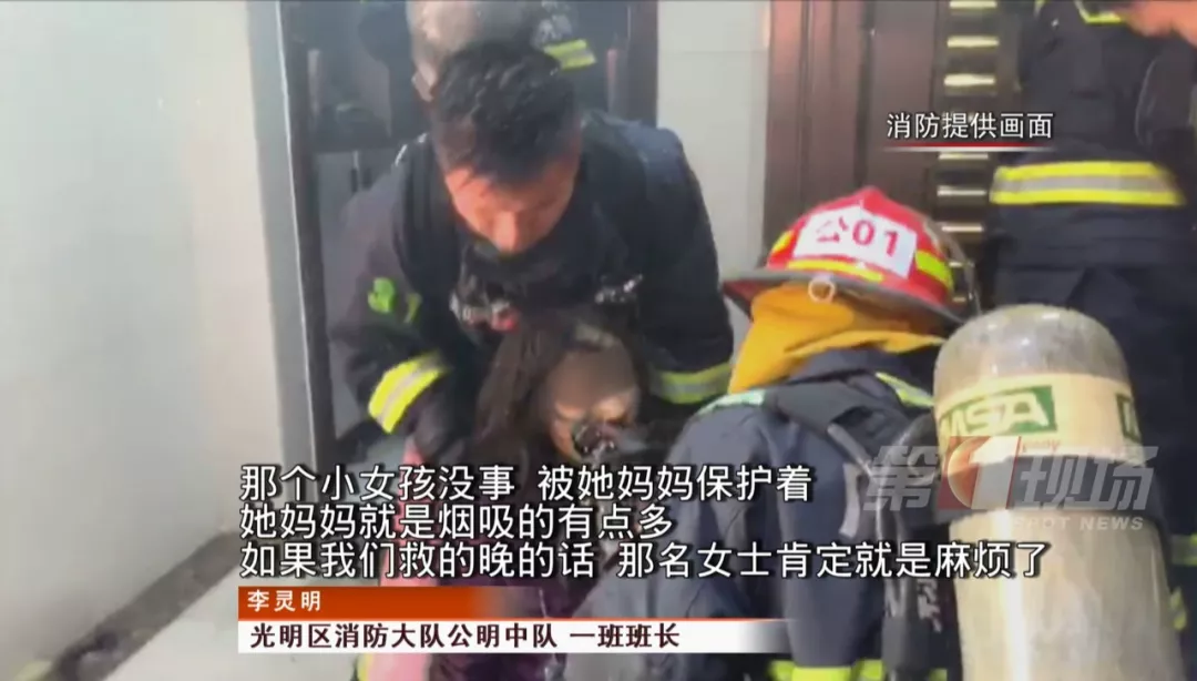 9點40分左右,消防隊員破門而入,成功將這對母女救出。據(jù)參與救援的消防指戰(zhàn)員李靈明回憶,當(dāng)時他們沖進(jìn)濃煙滾滾的屋內(nèi)時,母親正用手拼命護(hù)住年僅4歲女兒的口鼻,而自己則處于完全無保護(hù)的危險狀態(tài)。