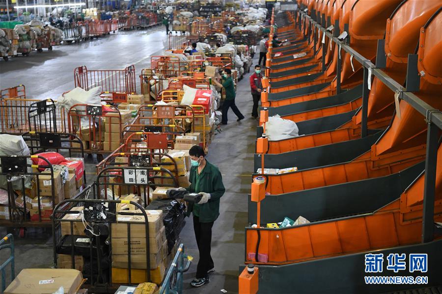 4月1日,在深圳郵件處理中心,工作人員在分揀郵件。據深圳市郵政管理局介紹,春節(jié)以來,深圳郵政快遞業(yè)累計向湖北運送各類醫(yī)療、防疫物資超2萬批次,累計為深圳市民配送防疫物資和生活必需品超過2.5億件,為防疫物資和群眾基本生活必需品送達提供了有力保障。新華社記者 梁旭 攝
