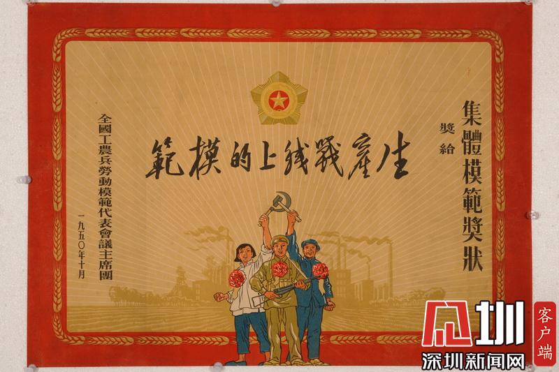 全國(guó)工農(nóng)兵勞動(dòng)模范代表會(huì)議集體模范獎(jiǎng)狀。