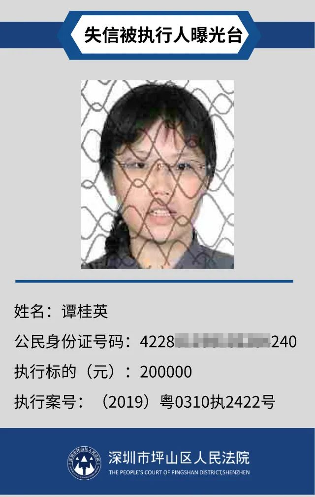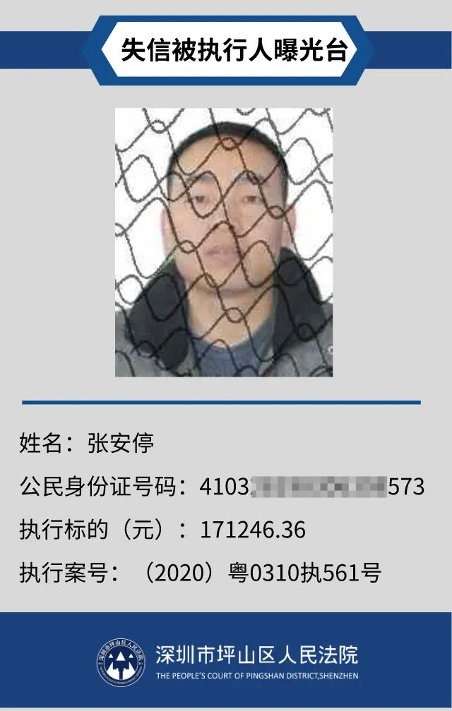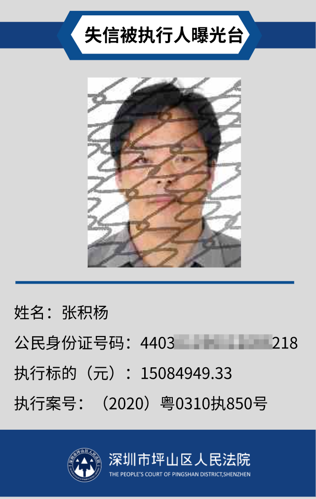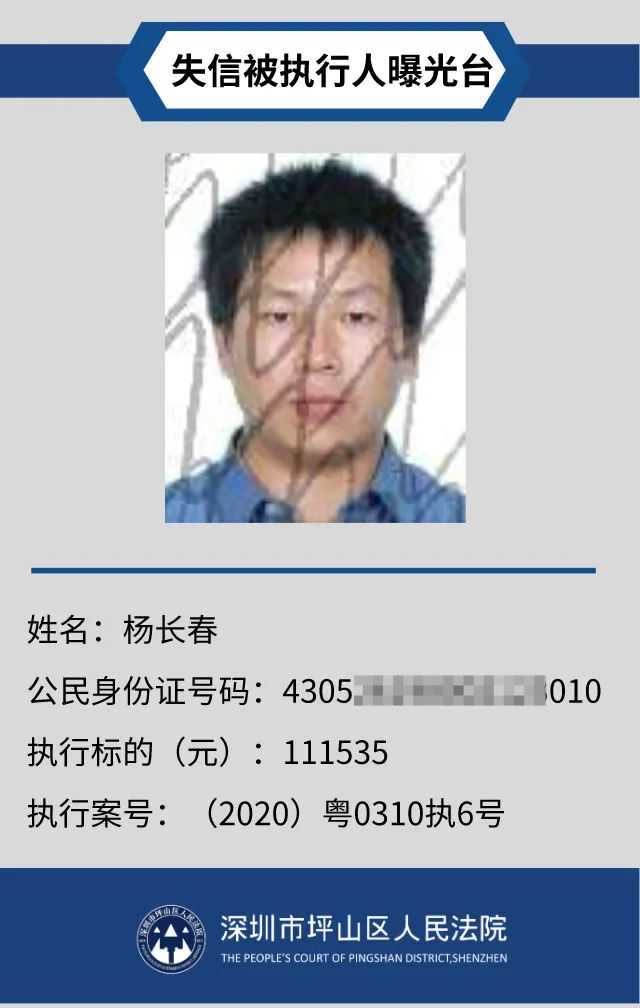 為督促被執(zhí)行人自覺履行生效法律文書確定的義務(wù),推進(jìn)社會(huì)誠(chéng)信體系建設(shè),深圳市坪山區(qū)人民法院根據(jù)《中華人民共和國(guó)民事訴訟法》第二百五十五條、《最高人民法院公布失信被執(zhí)行人名單信息若干規(guī)定》第一條和第七條之規(guī)定,現(xiàn)對(duì)31名失信被執(zhí)行人予以公布。名單信息根據(jù)案件結(jié)案情況及時(shí)更新,歡迎舉報(bào)失信被執(zhí)行人行蹤及財(cái)產(chǎn)線索,相關(guān)信息核實(shí)請(qǐng)聯(lián)系深圳市坪山區(qū)人民法院執(zhí)行局。