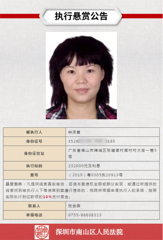 舉報(bào)電話詳見執(zhí)行懸賞公告