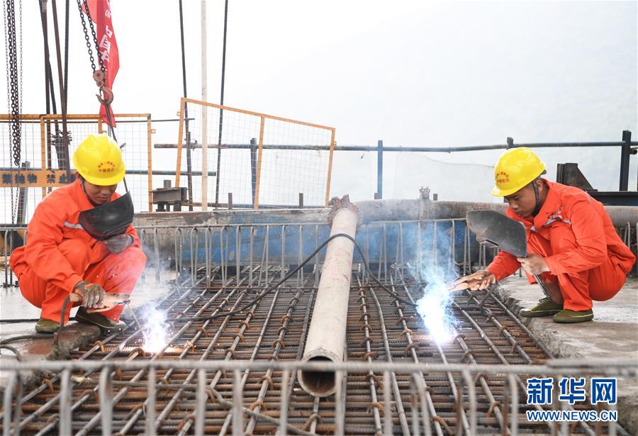 10月23日,在重慶涪陵,施工人員在渝懷鐵路涪秀二線重點工程——烏江右線大橋主跨合龍現(xiàn)場作業(yè)。 當日,由中鐵四局承建的渝懷鐵路涪秀二線重點工程——烏江右線大橋主跨成功合龍,標志著大橋主體工程全部順利結束。烏江右線大橋項目全程460.1米,主跨192米,跨越烏江和319國道。在兩年多的建設過程中,施工人員攻克了“不等高墩”“不對稱邊跨”“邊跨入隧”等多個技術難題。 新華社記者王全超攝