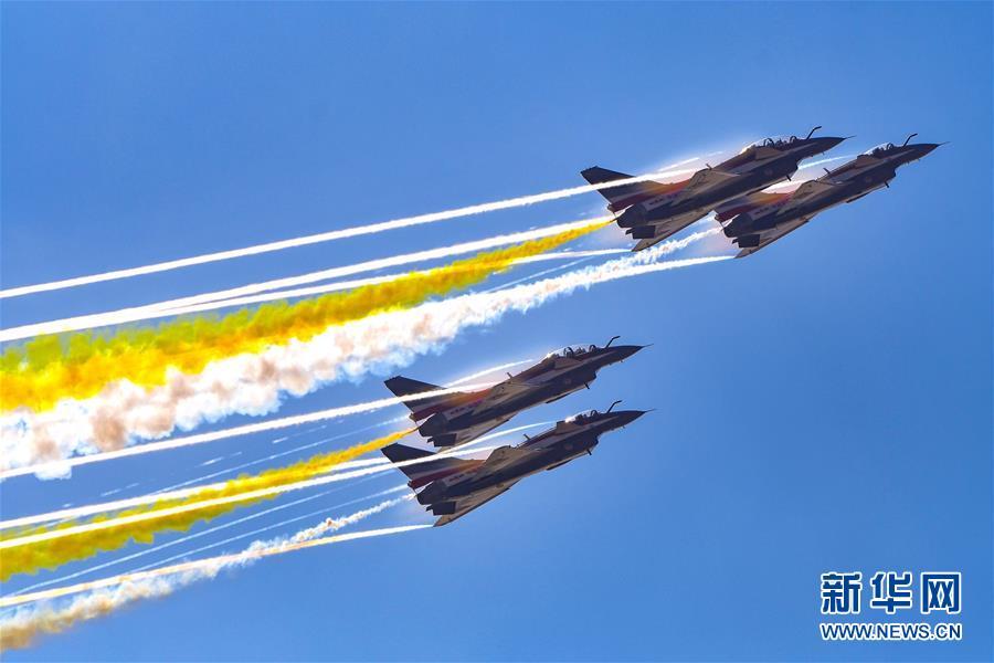 11月6日,中國空軍八一飛行表演隊在航展現(xiàn)場進行飛行表演。當日,第十二屆中國國際航空航天博覽會在珠海開幕。新華社記者鄧華攝