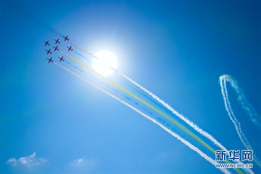11月6日,中國空軍八一飛行表演隊在航展現(xiàn)場進行飛行表演。當日,第十二屆中國國際航空航天博覽會在珠海開幕。新華社記者楊光攝