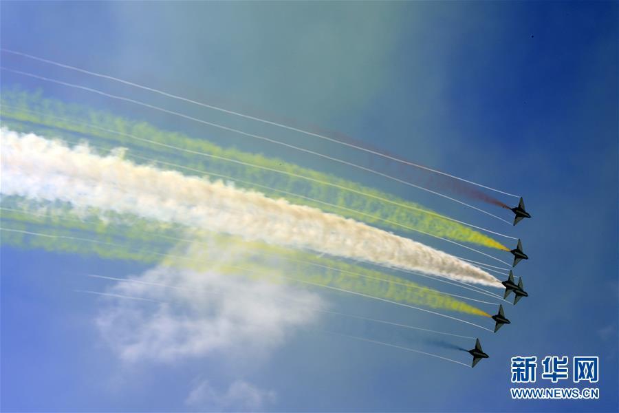 11月6日,中國空軍八一飛行表演隊在航展現(xiàn)場進行飛行表演。當日,第十二屆中國國際航空航天博覽會在珠海開幕。新華社記者梁旭攝